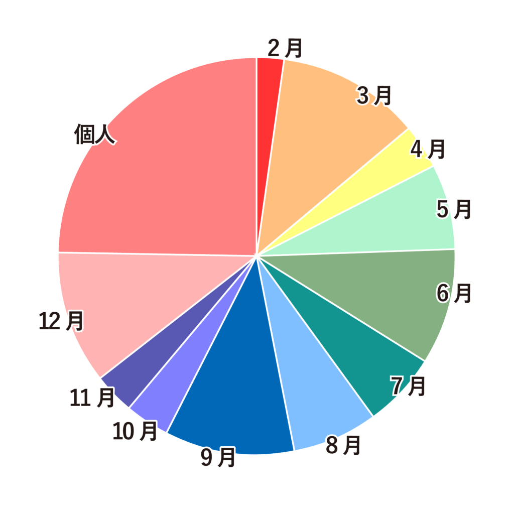 法⼈のお客様における決算⽉は年間を通してバランスよく分布しています。