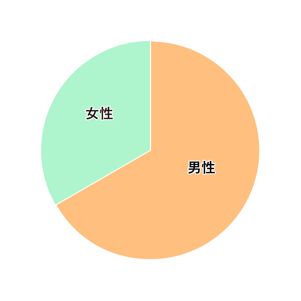 当事務所の男⼥⽐率は、男性が5名・⼥性が3名です。