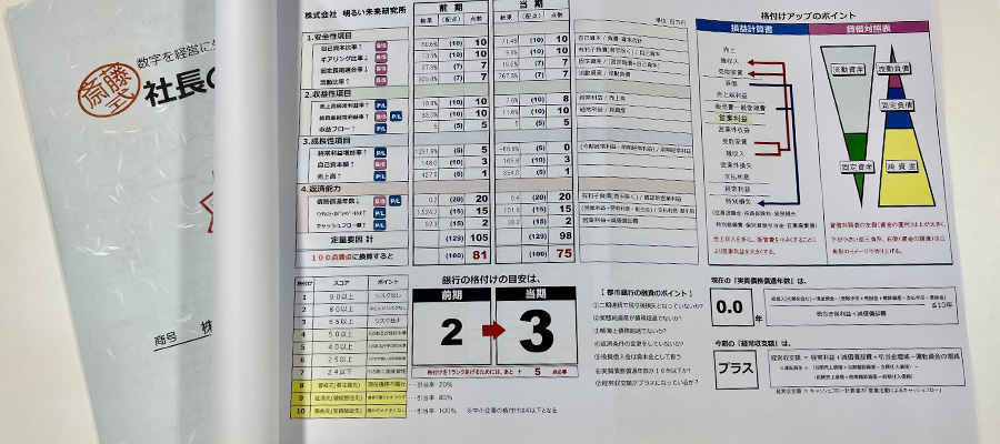 毎期、決算後に決算書を分析したオリジナル財務分析資料「社⻑の成績表」を作成します。
